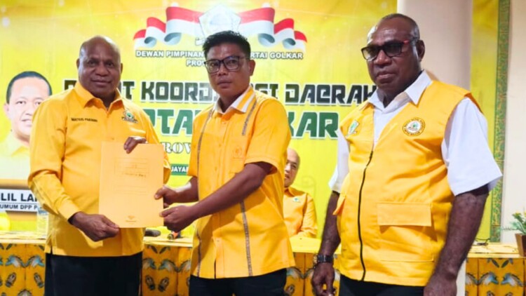 Penyerahan SK dilakukan secara langsung oleh Matius Fakhiri dalam kegiatan Rapat Koordinasi Daerah (Rakorda) Partai Golkar Papua yang berlangsung di Kota Jayapura, Kamis (29/1/2026).